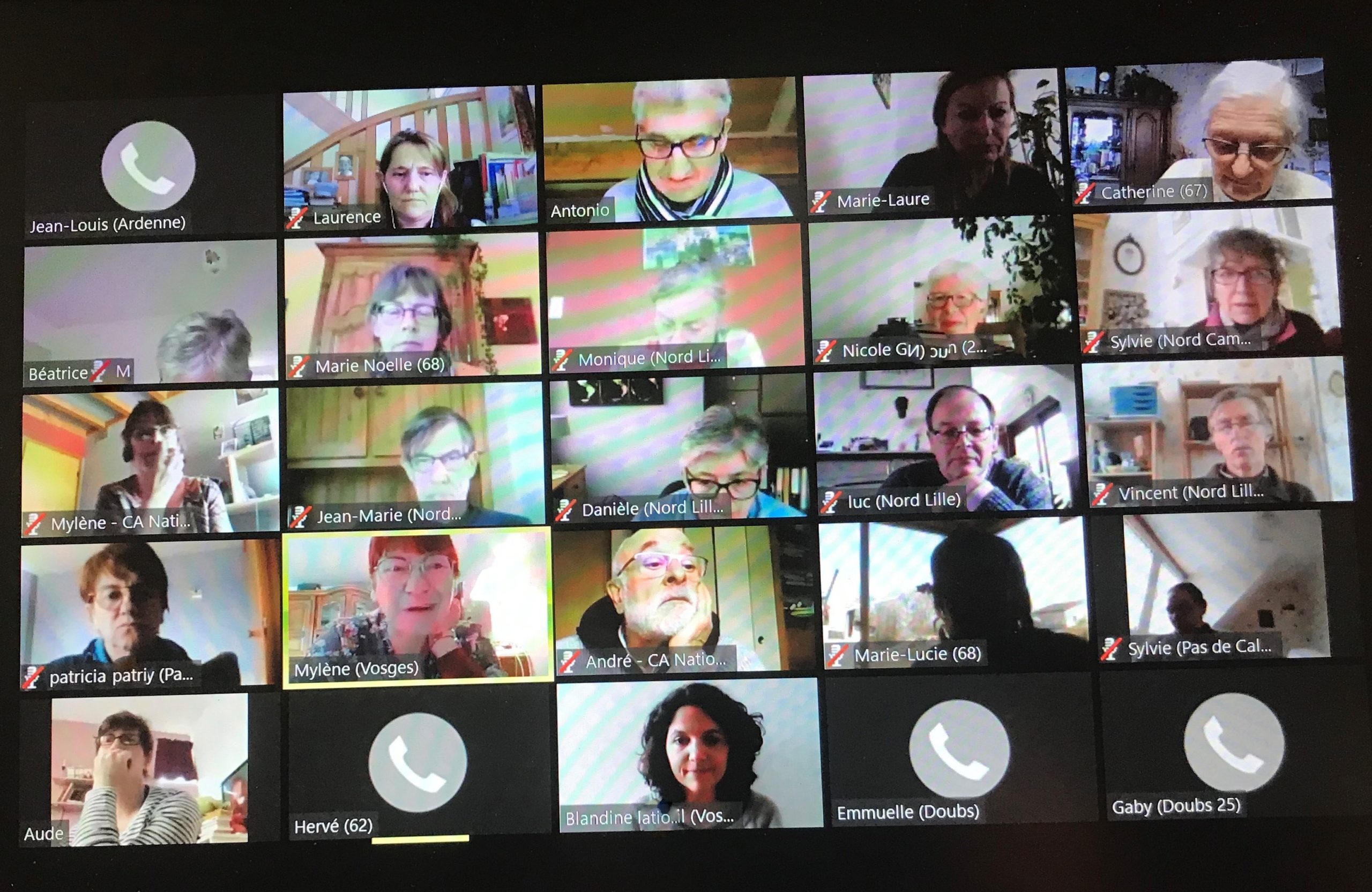Chaque participant-e se présente avec son nom et sa FD. Celles et ceux qui n’arrivent pas à se connecter par Internet le font par téléphone. Quand tout le monde est là, la réunion peut commencer.